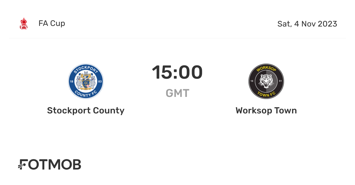 Stockport County vs Worksop live score, predicted lineups and H2H stats.